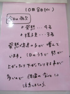 10月9日(木) 給食:さばのみそ煮・いんげんのツナごま和え・みそ汁 おやつ:かぼちゃの蒸しパン
