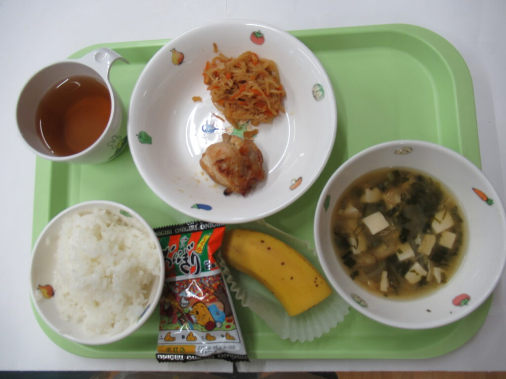 11月25日(火) 給食:鶏肉のさっぱり煮・切り干し大根の旨煮・みそ汁 おやつ:バナナ・せんべい