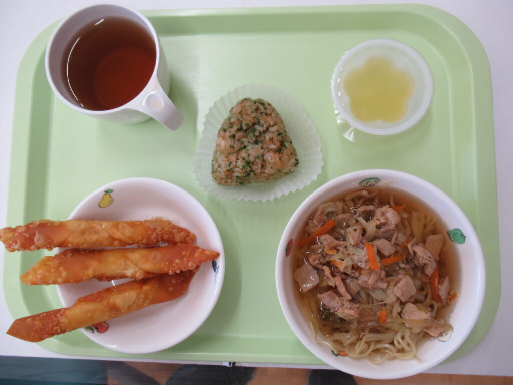11月28日(金) 給食:しょうゆラーメン・チーズ巻き・ゼリー    おやつ:たぬきおにぎり