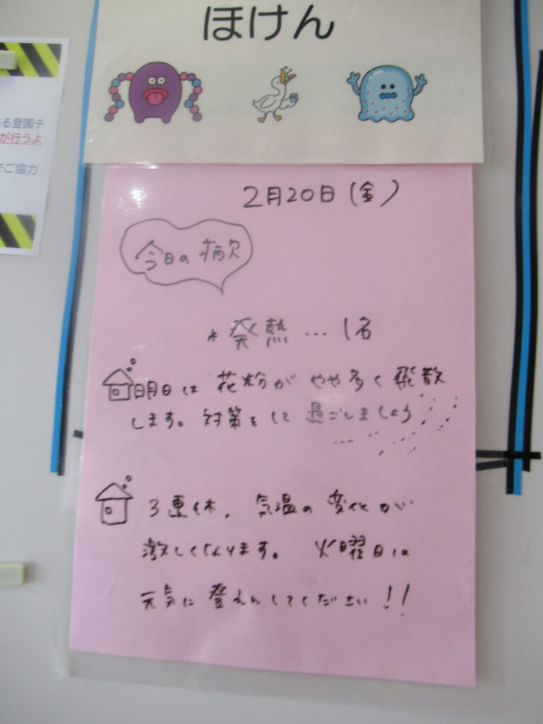 ほけんたより 看護師さんからの毎月のお知らせです。 R7年5月 給食だより 投稿: 2025年5月7日 ほけんたより 一覧 食事と離乳食 幼児食 3歳未満児は10時のおやつ、昼の主・副食、3時のおやつを園で提供します。 3歳以上児は昼の主・副食、3時のおやつを提供します。 離乳食 離乳食は保護者の方と離乳食の進め方を話し合い、月齢に応じ個別に準備します。 ※食物アレルギーのある場合は、別途ご相談く…