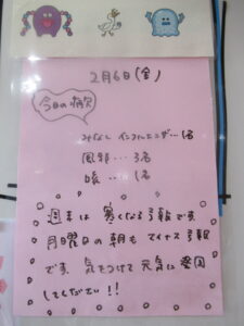2月5日(木)給食:チキンスパイス焼き・春雨サラダ・みそ汁 おやつ:せんべい・クッキー